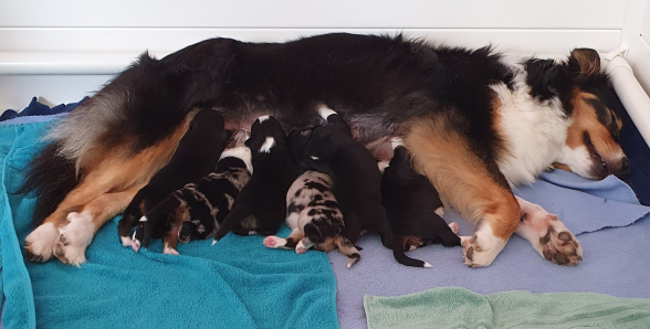 Die Zwerge wachsen bis zu ihrem Auszug im Haus und Garten auf und werden dem Alter entsprechend bestmöglichst sozialisiert. Sie werden nicht in ein Gartenhaus oder einen Stall verbannt. Unseren Würfen gehen langjährige Planungen voraus, wir betreiben keine 08/15-Zucht. Die Hündinnen ziehen jeweils nur EINEN Wurf groß und es verbleibt auch immer ein Welpe bei uns. Ich habe Aussies seit 1996 und neben der Zuchterfahrung verfüge ich über umfangreiche Kenntnisse in der Frühsozialisierung von Welpen. Eigene Hundeschule seit 2009, staatlich geprüfte und zertifizierte Hundetrainerin.